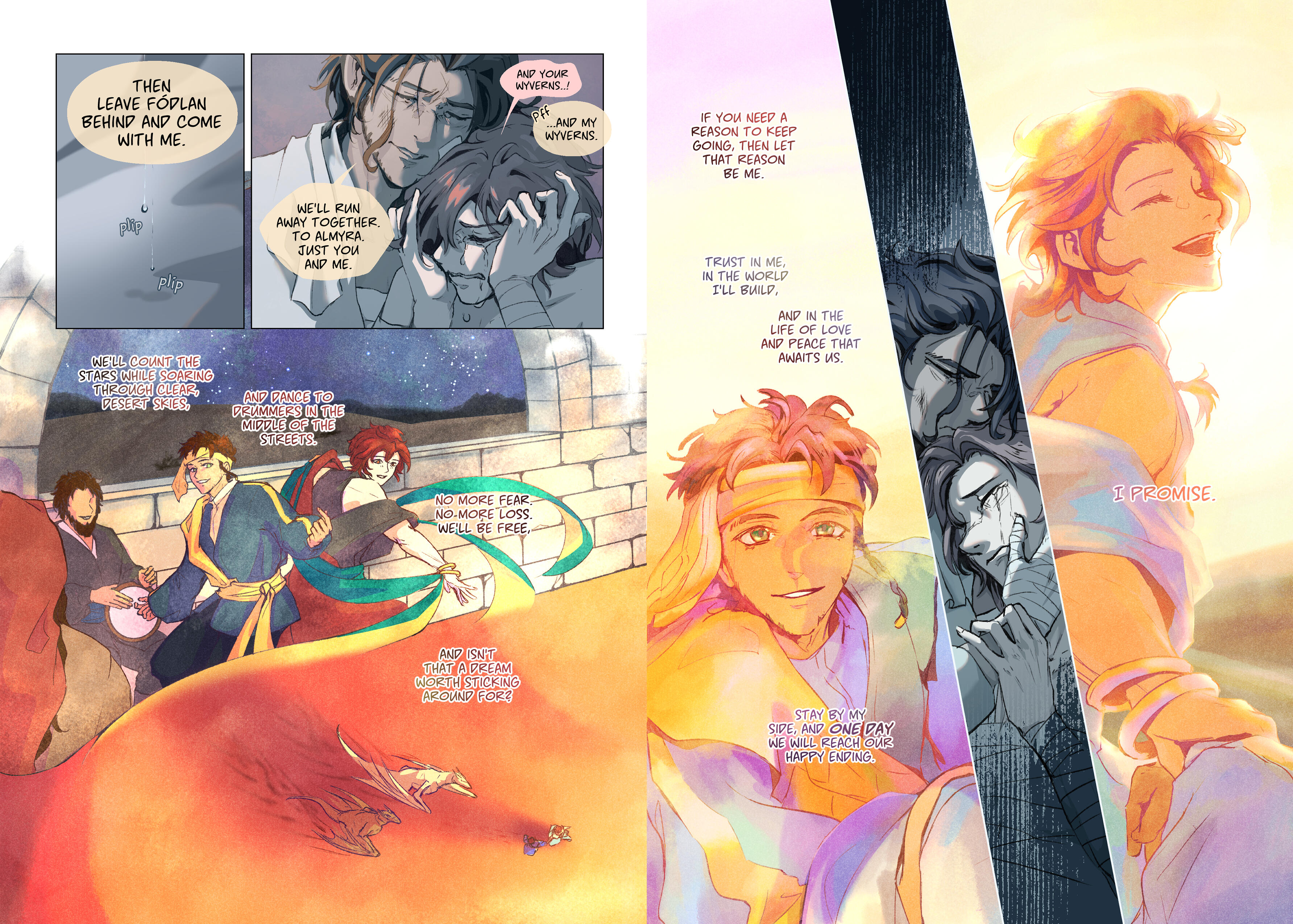 ● Comics can be in page or scroll (Webtoon) format. Both average about 5 panels per "page."● The written script/scene does not have to take a specific form. You do not need to provide page layouts or individual panel descriptions. Write however is most comfortable to you whether that be prose, a comic script, or anything in between, and it will be adapted as necessary.● Changes may be made to your script so it reads more naturally as a comic. Comics get two cycles of revision requests in the sketch stage to account for this.● Because comic commissions are so much more involved and require a lot of communication, please be available to answer any questions in a timely manner until sketches are complete.